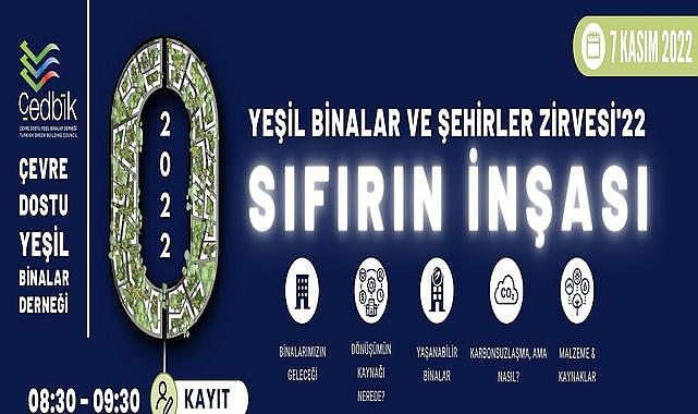 Sürdürülebilirlik alanında çıkan fırsatları daha güçlü bir şekilde vurgulamak hedefiyle harekete geçen yapı sektörü, ÇEDBİK Çevre Dostu Yeşil Binalar Derneği (ÇEDBİK) ev sahipliğinde, T.C. Çevre, Şehircilik ve İklim Değişikliği Bakanlığı desteğiyle “Yeşil Binalar ve Şehirler Zirvesi’22" etkinliğinde bir araya geliyor.